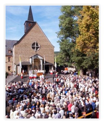 Unsere Aufgabe begann mit der würdevollen Fassung der Reliquien Hildegards in den Reliquienschrein 1929. Seit dem waren mindestens 4 gestandene Männer notwendig, die den schweren Schrein und die Trage zu der jährlich stattfindenden Prozession trugen.